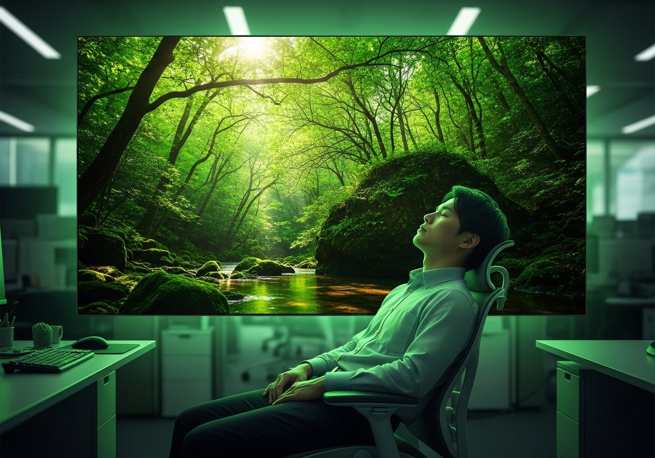Что интересно, эти зоны всё чаще включают LED-экраны, транслирующие пейзажи, медленные анимации и фоновую аналитику: мягкое визуальное сопровождение, создающее атмосферу покоя. Это не просто декор - это элемент новой корпоративной культуры, где человек и его состояние выходят на первый план.