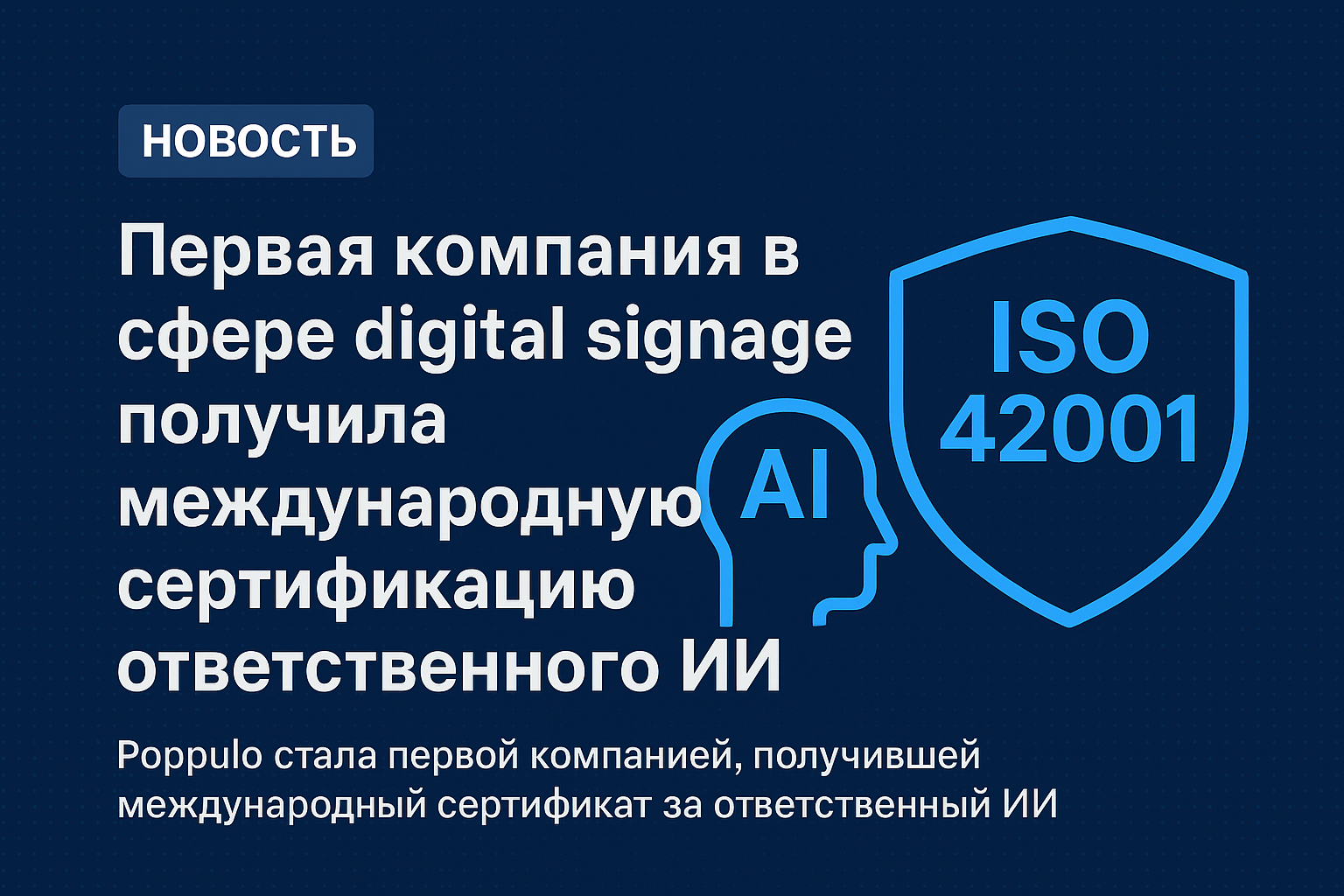 Компания Poppulo, известная своими системами digital signage и корпоративных коммуникаций, стала первым представителем отрасли, сертифицированным по стандарту ISO 42001 — международному стандарту для систем управления искусственным интеллектом (AIMS).