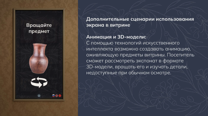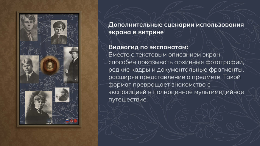 В результате музеи получают не просто экран, а новый уровень экспозиционной коммуникации — с возможностью обновлять контент, добавлять языковые версии, проводить спецвыставки без перепечатки стендов и замены витрин.