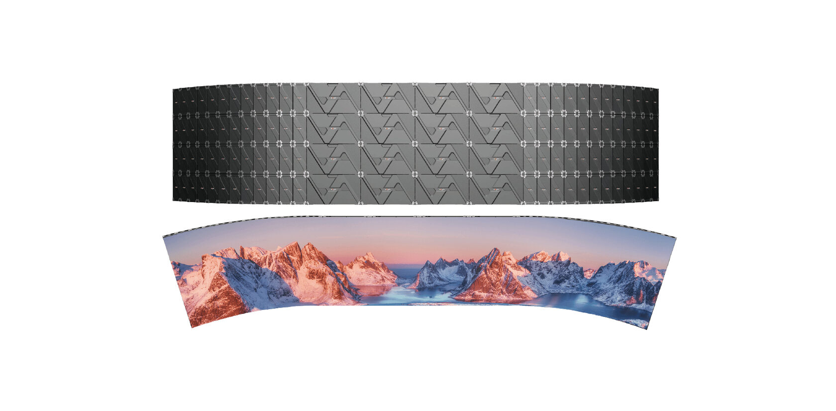 Дополнительные преимущества: варианты монтажа включают настенную и подвесную установку, возможность сборки экранов под углом 90° и создание гибких, вогнутых конструкций (радиус изгиба до 2,87 м).